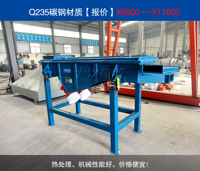 Q235碳鋼材質(zhì)直線篩材質(zhì)的一種,它的價(jià)格便宜、熱處理和機(jī)械性能好,雖然它適用的行業(yè)有很多,但是它的材質(zhì)具有一定的腐蝕性,衛(wèi)生條件也是相對(duì)差一些,所以對(duì)于篩分石英砂的用戶來(lái)說(shuō)還是要慎重選擇。
