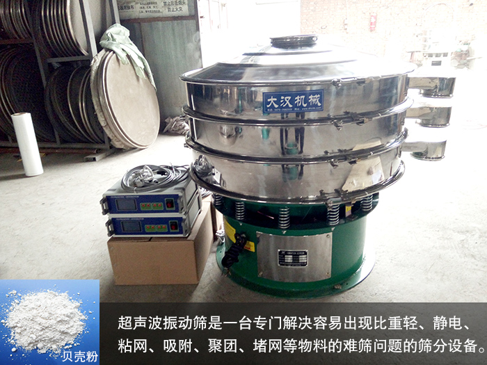 貝殼粉是指貝殼經(jīng)過粉碎研磨制成的粉末,網(wǎng)目一般在400目左右,它的比重較輕,容易產(chǎn)生靜電問題,所以一般的振動篩很難進(jìn)行有效篩分,今天小編就給您推薦一款專用于貝殼粉篩分振動篩——超聲波振動篩。下面小編就給您講一講超聲波振動篩在貝殼粉的篩分上的優(yōu)勢!