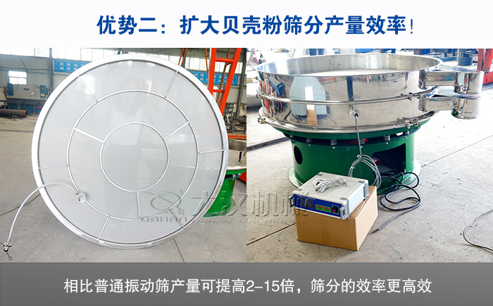 貝殼粉所使用的超聲波振動篩通常也被稱為精細(xì)粉超聲波振動篩,該設(shè)備可以輕而易舉解決具有高吸附性、易團(tuán)聚、高靜電、高精細(xì)、高密度、輕比重等特點的物料的機械篩分。適用于100目—600目超細(xì)物料的篩分、除雜、過濾、分級,所以可以輕松滿足400目貝殼粉的篩分,同時它的篩分精度比普通振動篩可提高1—70%。