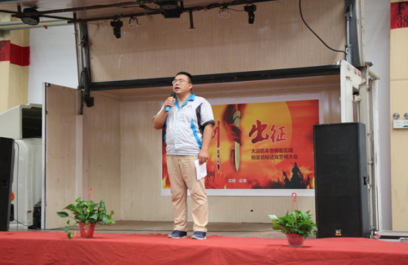首先,他對周總因公出差不能親臨現(xiàn)場的情況進行了說明,并代周總對我們此次誓師大會的所有營銷精英們問好,他表示,周總雖出差在外,但是仍關(guān)心著我們本次大會的召開,所以特將此次誓師大會所有事項授權(quán)委托給我和銷售副總助理盧傳祥,希望我們能夠?qū)⒒顒咏M織好、策劃好,同時希望大家能夠振奮精神,昂揚斗志,帶著大運公司領(lǐng)導(dǎo)和員工們的信任迎難而上,奮勇拼搏,努力完成9月份銷售任務(wù)目標。